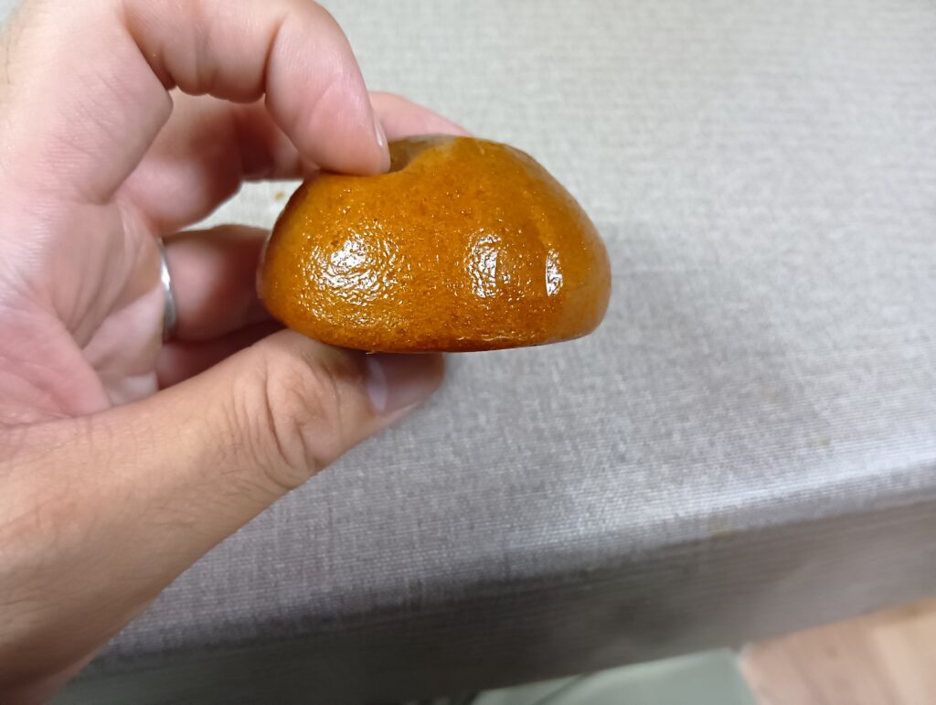 黒糖まんじゅう(税込み100円)も薄皮で、あんがギッシリ詰まっていました。