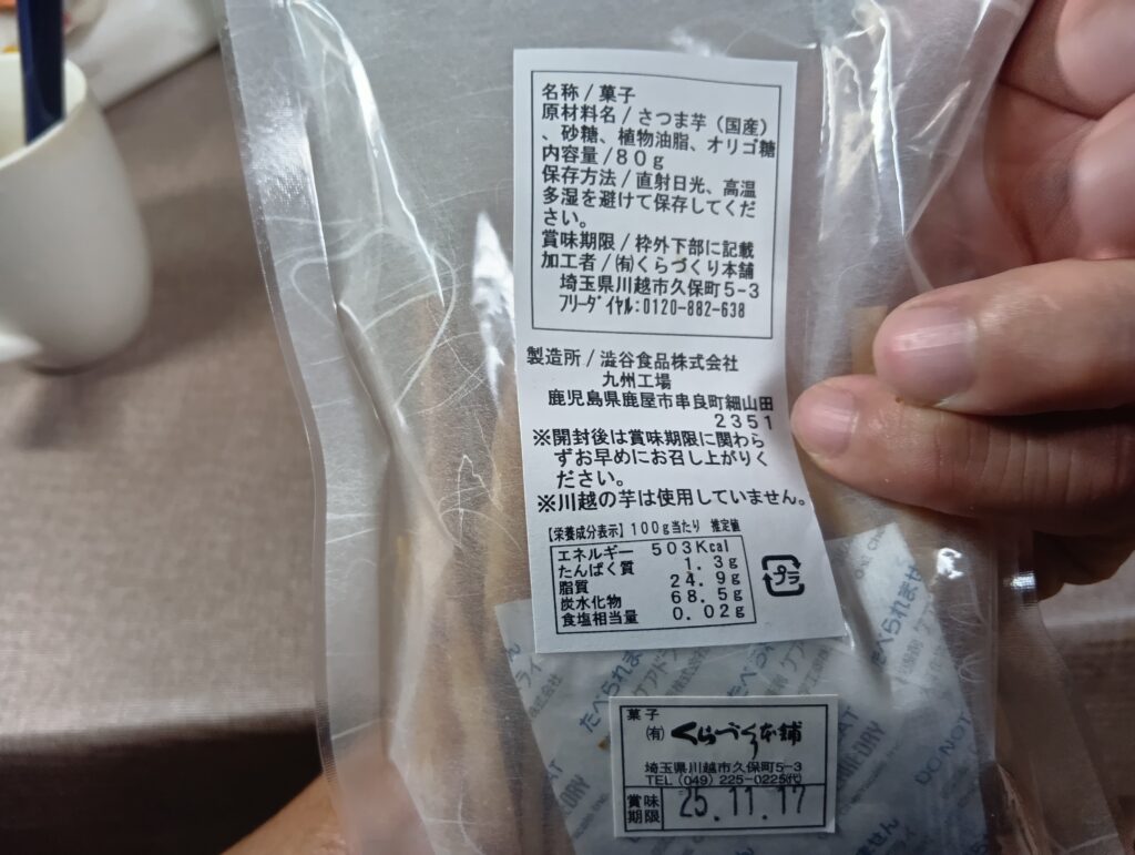 芋けんぴ(税込み360円)には無駄なものが入っておらず、子どもにも安心して食べされます。